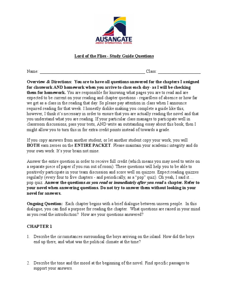 Chapter questions lord of the flies Lord of the flies, Teaching high
