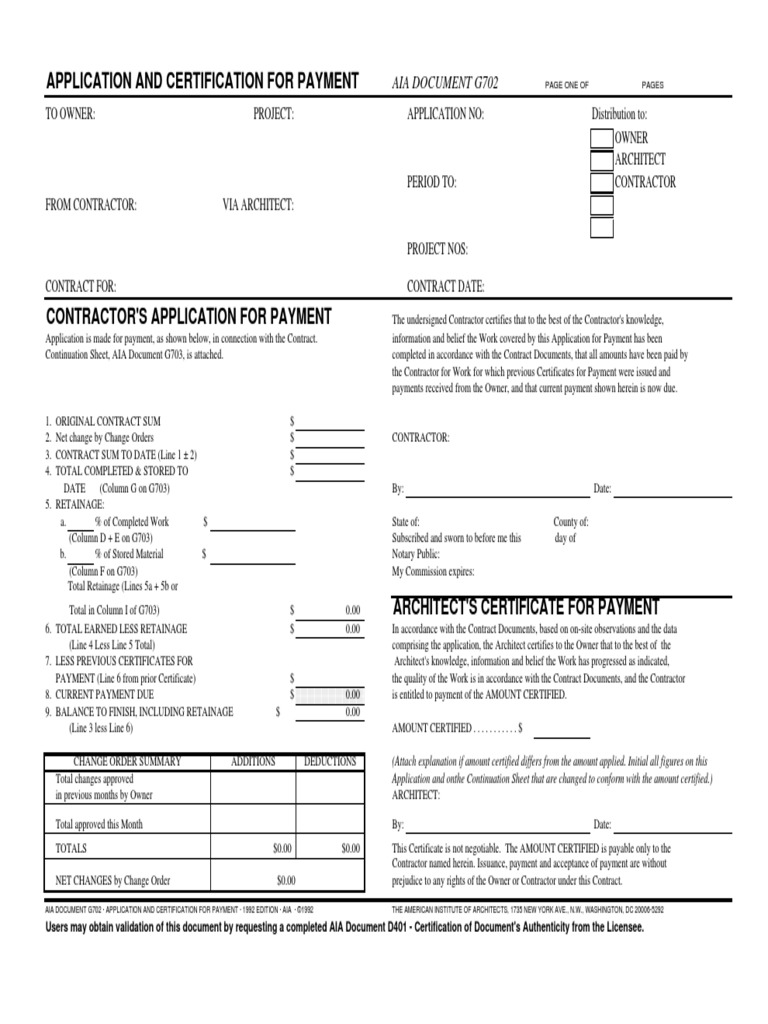 Access the key steps to completing the g702 here Firstly, find the “get form” button and tap it. To ensure timely payments, it’s important that your payment application is accurate and complete. Web the g702 form streamlines the process of the subcontractor applying for project payment. Web march 13, 2023 getting paid on time is critical for your business.