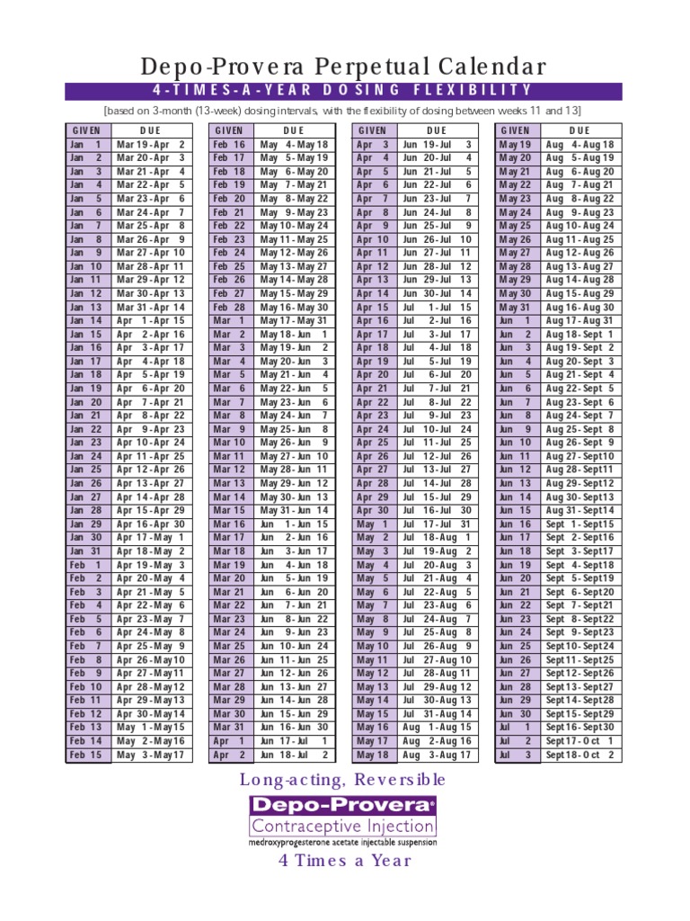 Web progestin injection perpetual calendar. Web you can either download the pdf of depo calendar and print and keep track of depo shot manually by marking the dates or if. This table outlines, day by day, the window for giving.